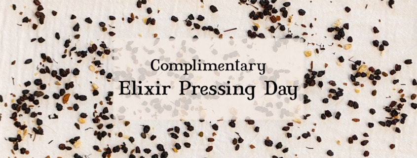 It’s been (hopefully) at least six weeks of shaking and storing your elixir or oxymel in the cool dark and now, it’s time to press your Elderberry elixir(s) so you can start taking it! Whether you press it at home, or have signed up to have it pressed for you, you should end up with approximately 18-20 fl. ounces of herbal goodness for you to add your raw local honey to. Once you have added your own honey, your elixir is ready to help you maintain health through cold and flu season