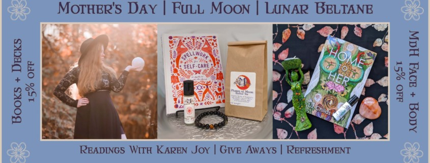 Join us on Saturday May 10th from 2-6p -or- Sunday May 11th from 11a-4p for discounted shopping, a tarot or oracle reading, refreshments, and free gifts to celebrate the wise & sacred earthly goddesses in our lives.
