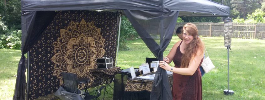 Both the readings and henna will be charged at $1.00 per minute – readings are either fifteen or thirty minutes, and henna starts with a ten-minute minimum. Payments by cash or check only to be made directly to Gayle and Jhenna.