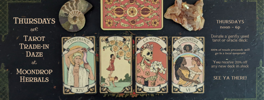 Thursdays are your chance to donate a gently used tarot or oracle deck you no longer feel drawn to and get a 20% discount on a brand new shiny deck!
